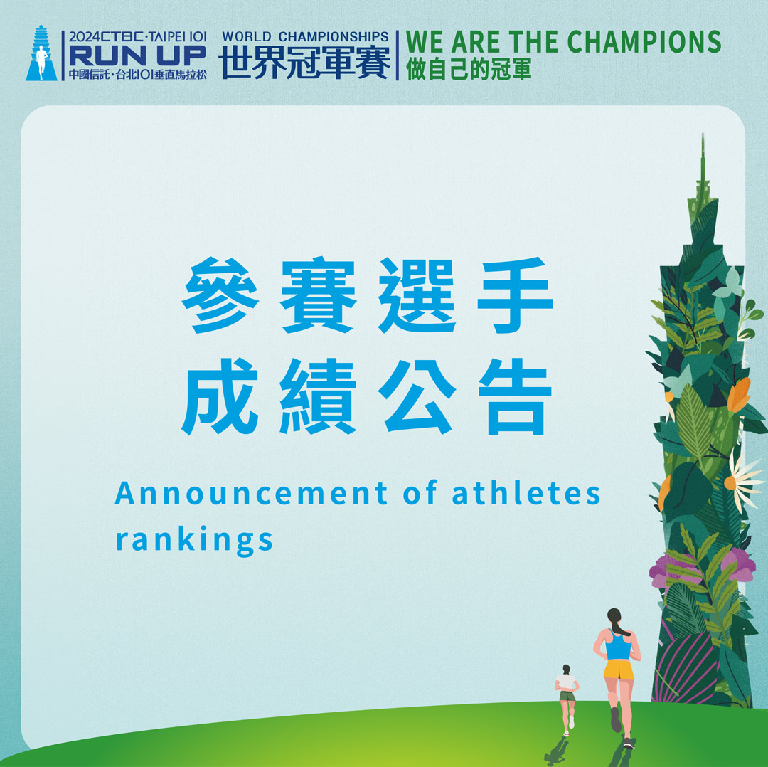 The ranking of athletes for TAIPEI 101 RUNUP is now announced!( 更多內容請點 More )